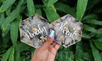 -material: resin, mica, gold flakes, dried flowers, acrylic paint